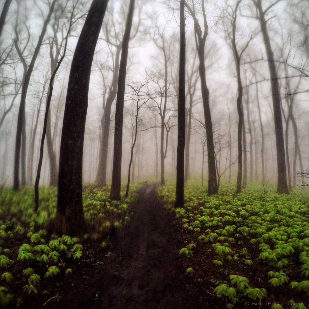 I held off putting on my headlamp for as long as possible, until around 8:30 I had to break the seal. My visibility immediately went from a foggy 30 yards, to white out conditions, allowing me to see only a few feet ahead.