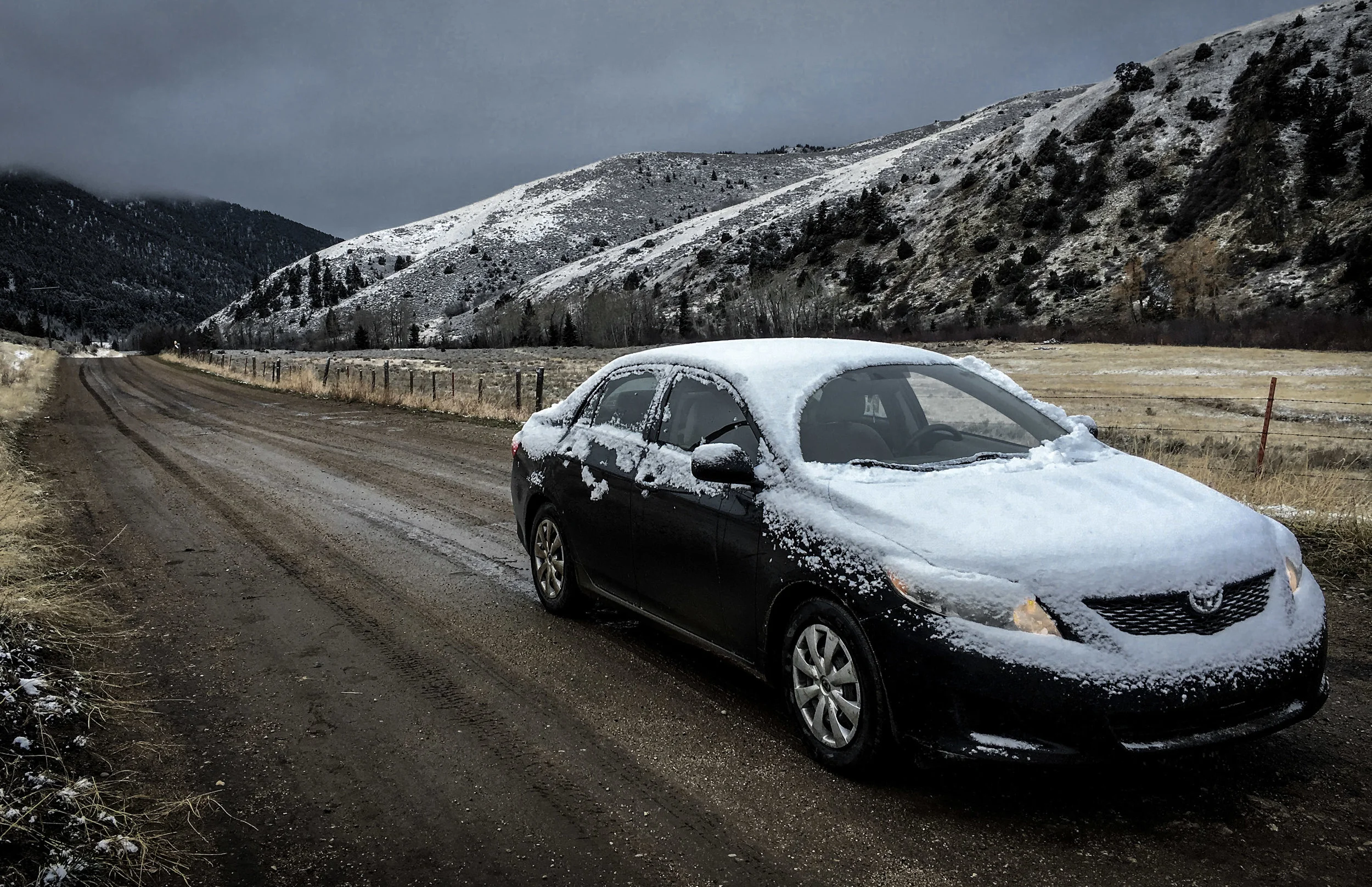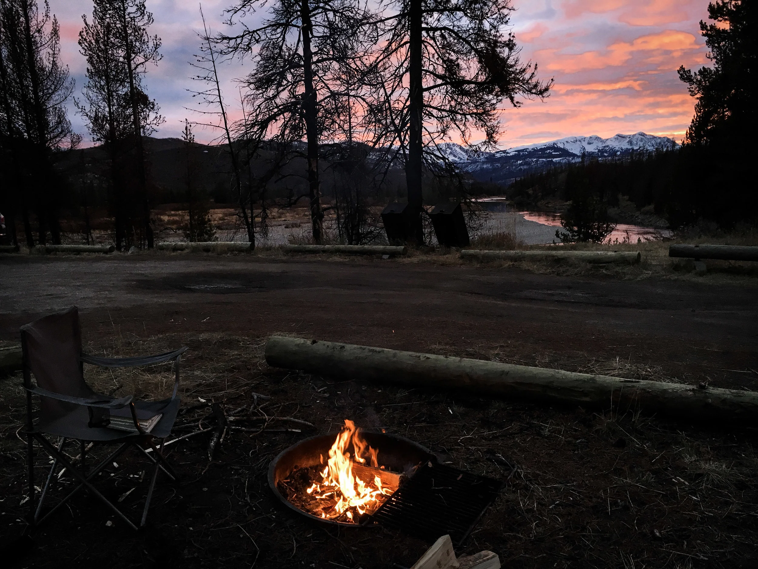 I drove on to the Lewis Lake Campground where I intended to spend the night, only to find it incredibly snow-laden and too treacherous for the Corolls to take on, and so I drove on, once again totally unsure of the plan and completely without service. I contemplated driving all the way through Teton, or trying to camp there, or investigating some free camping I read about just between Yellowstone and Teton. I decided to check the third option, finding it much less developed than expected, traversing a muddy road growing snowier by the mile, trying to make it ten miles out to a reservoir, anxiously turning around after the road grew too slushy for my comfort, retracing my tracks and finding this site, prime and snow-free. The fire now roars and all has grown dark and silent and I peer into the blaze reverently– squinting, tears egding down my face – the precipitation of the smoke’s exhale coupled with the gratitude for these days.