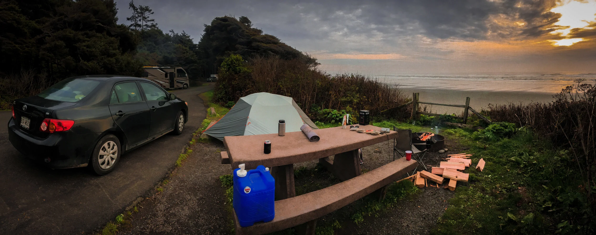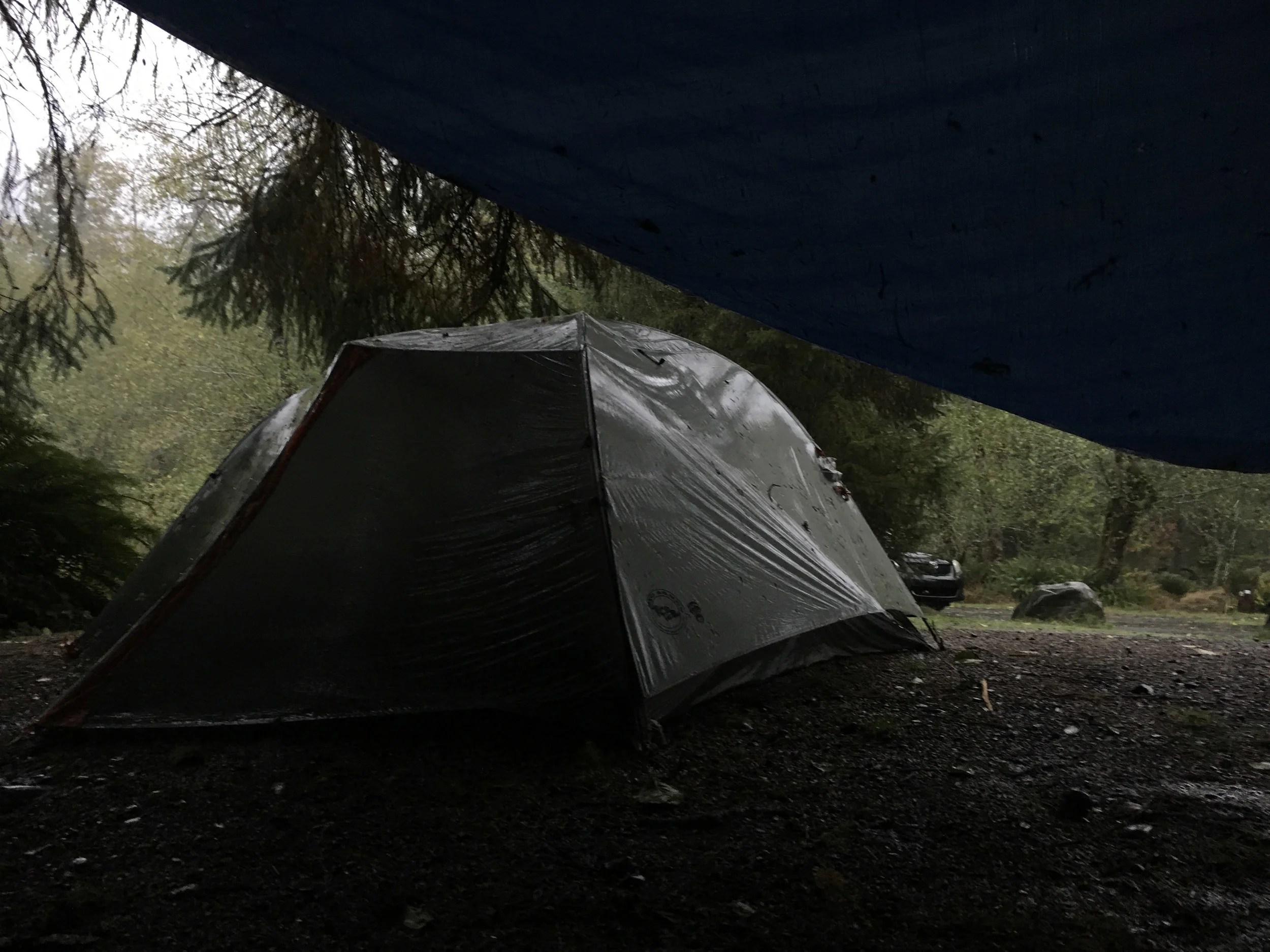 Everything is wet. These pages, the tent wall hovering in front of my face, the entire tent floor and the towel I laid out in vain to place my belongings on. I’m in a damp sleeping bag covered with a damp wool blanket. My feet feel remarkably dry, but my leggings are undoubtedly wet, resoaked when I ran out to take a piss and throw food into the Corolla. A steady pitter patter percusses on my tent’s fly, a sound I feel will last for eternity now, as if it’s been a part of my daily soundtrack all these years. It’s been dumping rain all day, pineapple express - an atmospheric river coming in from the Pacific and blocked progress by Mount Olympus and depositing a waterfall down upon the coastal rainforests. I put my damp puffy jacket on over my wet half-zip wool hoodie, and I curl my feet up to avoid touching the wet tent wall. This is the game I’ve been playing for the last hour and a half since getting into the tent for the night around 5.