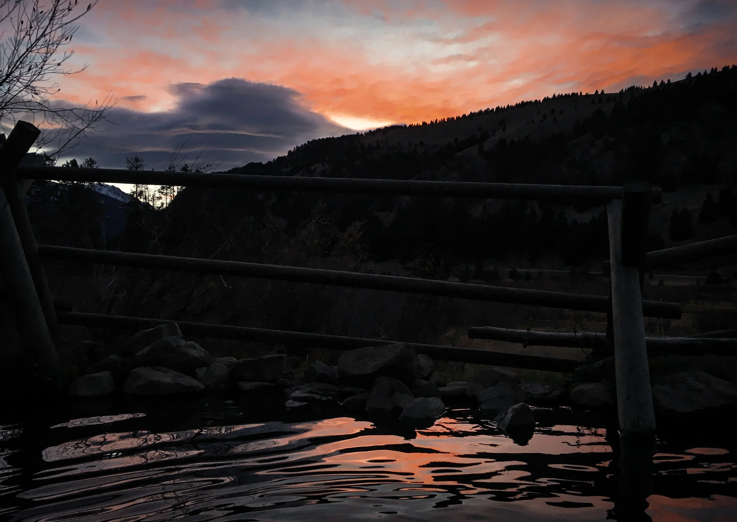 Truly a magical day entirely, waking around 7 to the well-predicted inch of snow on the ground and more still falling, deciding to suck it up and hike back out to the hot springs [found the night before], accepting the pain I would eventually endure upon exiting the bathtub waters into 20 degree temps. I got there and had just a pristine moment – dropping all my clothes and stepping from slushy snow into a fiery pool of sulfury water which bit at all my cool skin, and I felt just damn perfect all at once, all warm and peaceful and quiet and real. Snow gently fell onto the adjacent ridgeline and upon all the tall hemlocks and into the silky waters and unto my soul, and I meditated upon it all and relaxed, and had myself as close to a church service as I get, looking out to this beautifully-crafted cathedral - a real sensory waterfall, more pure than any man-made chapel - really studying it and pondering it and all at once not thinking anything at all, just feeling it, occasionally breaking into an unrestrainable grin, tears welling in my eyes as I remembered how great [elk call] this life, this existence, is and how blessed I am. Here, alone in this natural spring, the snow coming down, looking at this scene and becoming it. How did I get here? There was only one path to this moment and I’m damn honored it was mine.
